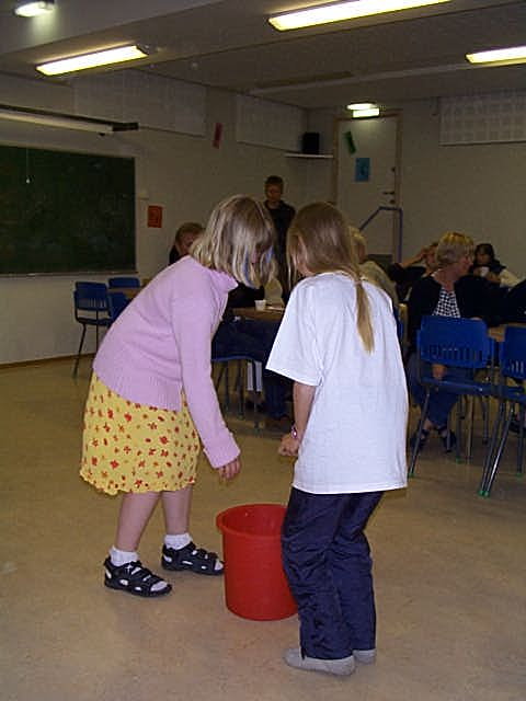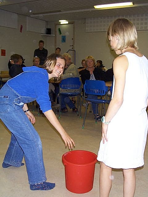 Etter boller og brus var det tid for litt lek. Først var det bøtte (svamp)