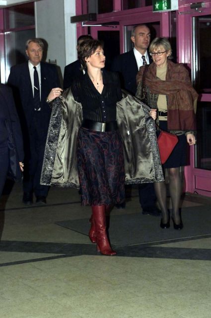 i Lørenskog i går. Iført stilig sort silkeskjørt, sort bluse og lange burgunderrøde støvletter smilte og hilste