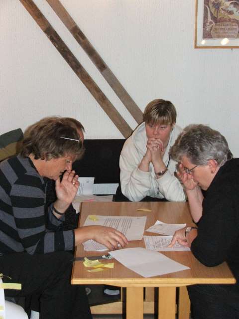 Alle lappene som ble satt opp på arbeidsplanen måtte samles for å kunne behandles, og denne gruppen brukte nesten hele natten på å få dette til.