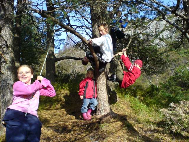 Søndag 25. september hadde Hordaland Distrikt åpen hytte på IOGT-hytten ”Heimtun” på Fløyen. Selv om de hadde latt Fløybane være Fløybane, og gått opp, hadde juniorene mer enn nok energi til å svinge seg i trærne. Så det var ingenting å si på engasjementet, verken i frilek eller i kubbespill utenfor hytten eller på brettspill innendørs da været begynte å trekke over.